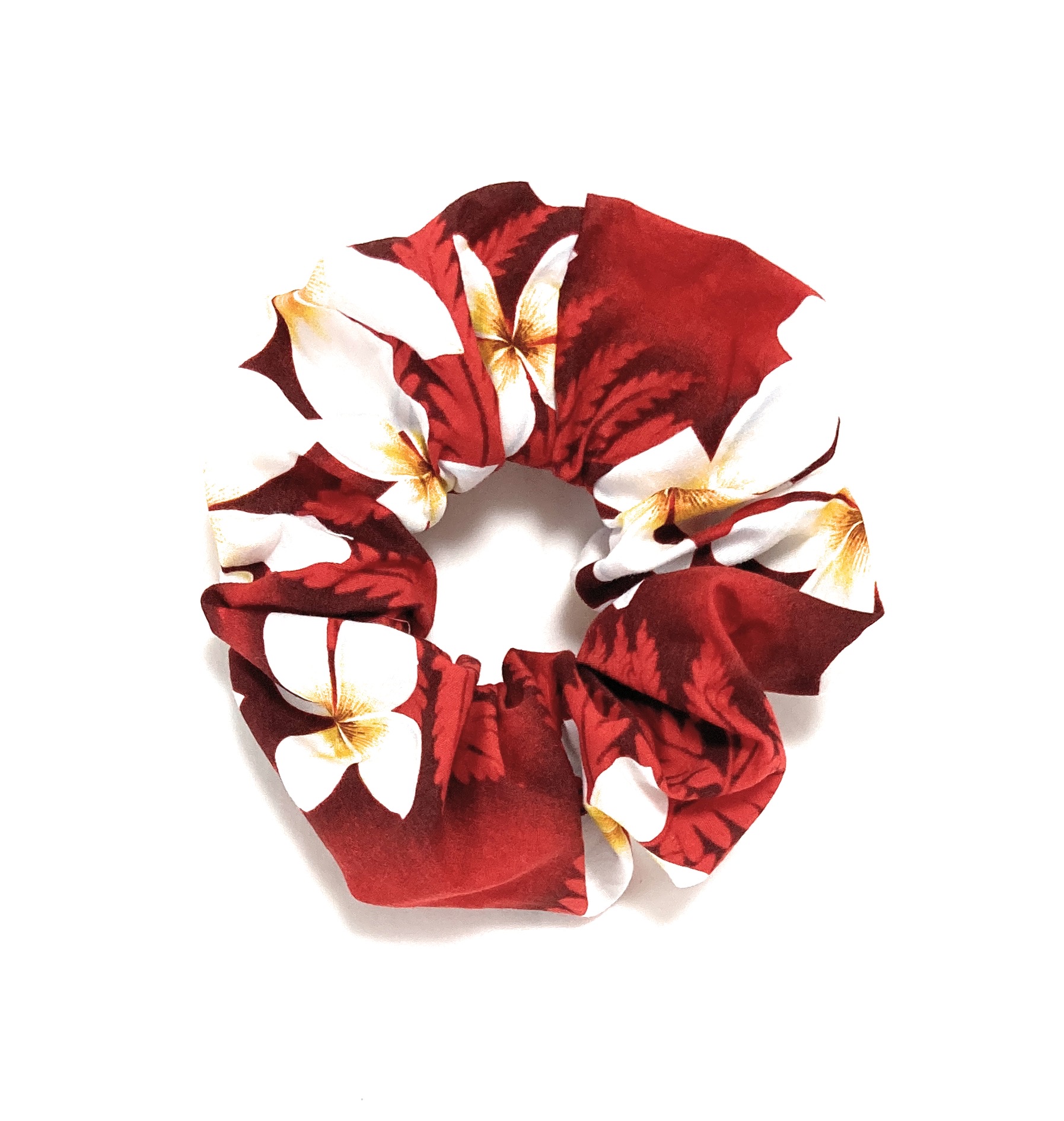 ハワイアン ヘアーアクセサリー・ボリューム・シュシュ プリメリア柄 レッド [mhsb-fb009]