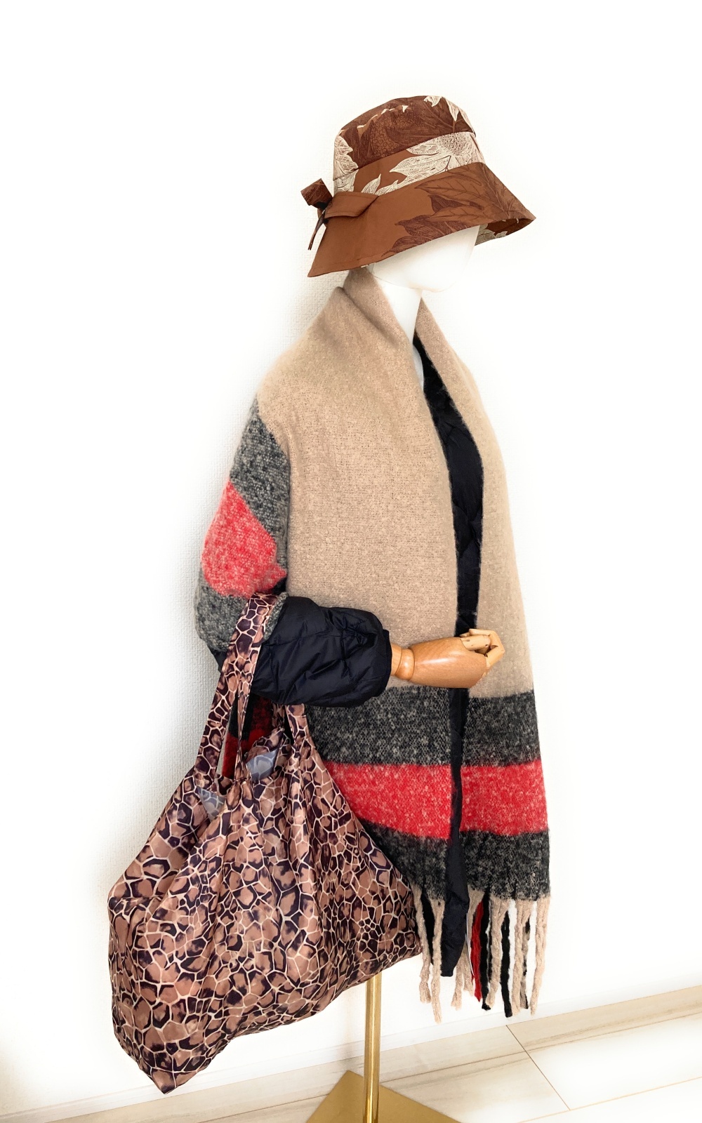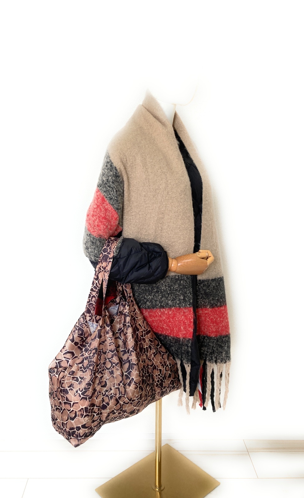 *コーディネートと使い方:大きめサイズで肩にかけられ、小さく折りたたんで持ち運べる、多機能サイズのトートバッグです。